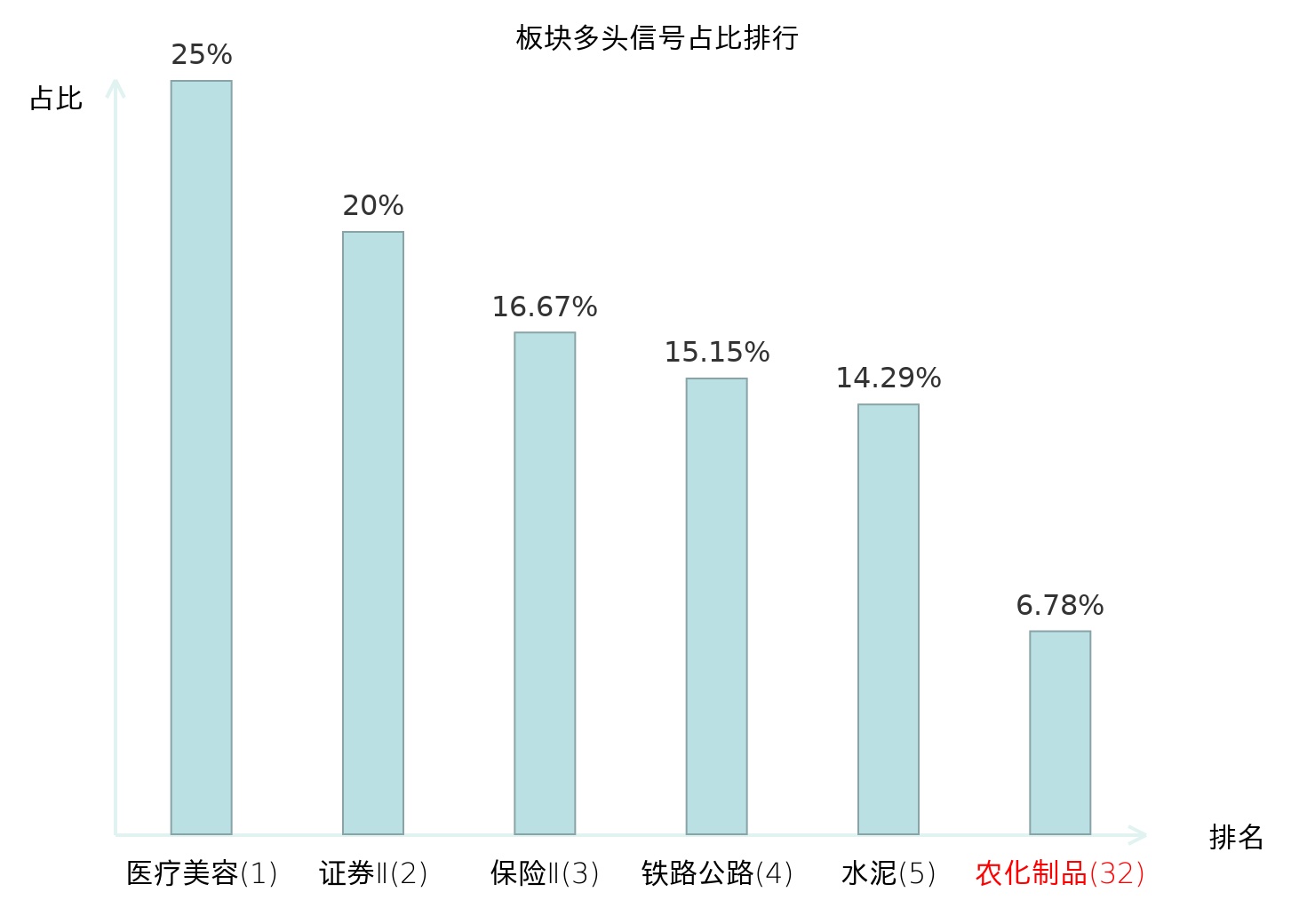 全市场所有行业板块中主力多头信号占比排名中,医疗美容板块位居第一。医疗美容板块名次提升最快,较昨日上升128位。