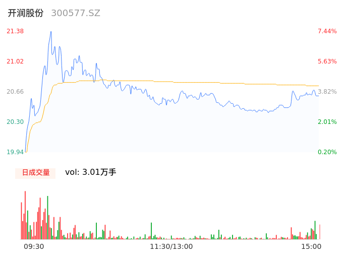 04月30日,开润股份收报20.62,股价涨幅3.62%,成交金额6242.74万元,换手率2.15%。