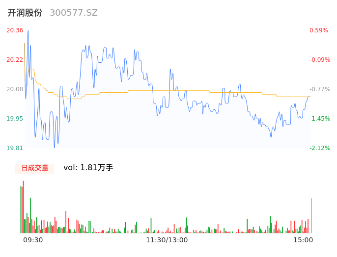 04月22日,开润股份收报20.10,股价涨幅-0.69%,成交金额3632.14万元,换手率1.29%。