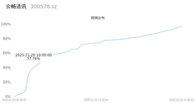 300578会畅通讯2025年11月20日成交10.04万手,成交金额1.88亿,相较昨日放量6.09万手,换手率5.06%,成交清淡。