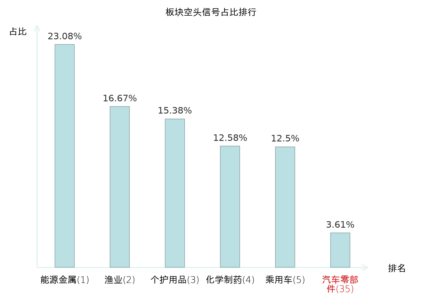 全市场所有行业板块中主力空头信号占比排名中,能源金属板块位居第一。小金属板块名次提升最快,较昨日上升105位。