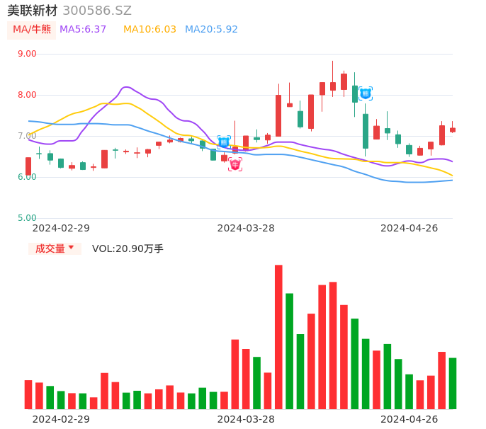 美联新材牛熊点指标分析报告-20240426