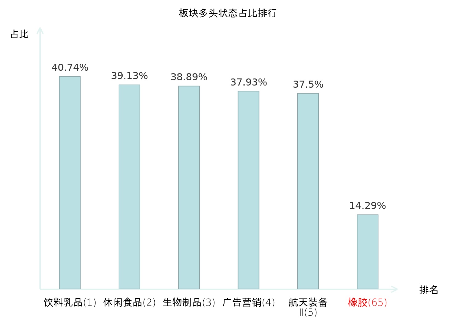 全市场所有行业板块中主力多头状态占比排名中,饮料乳品板块位居第一。国有大型银行Ⅱ板块名次提升最快,较昨日上升71位。