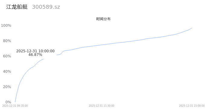 300589江龙船艇2025年12月31日成交60.54万手,成交金额11.02亿,相较昨日缩量8.69万手,换手率26.14%,成交活跃。