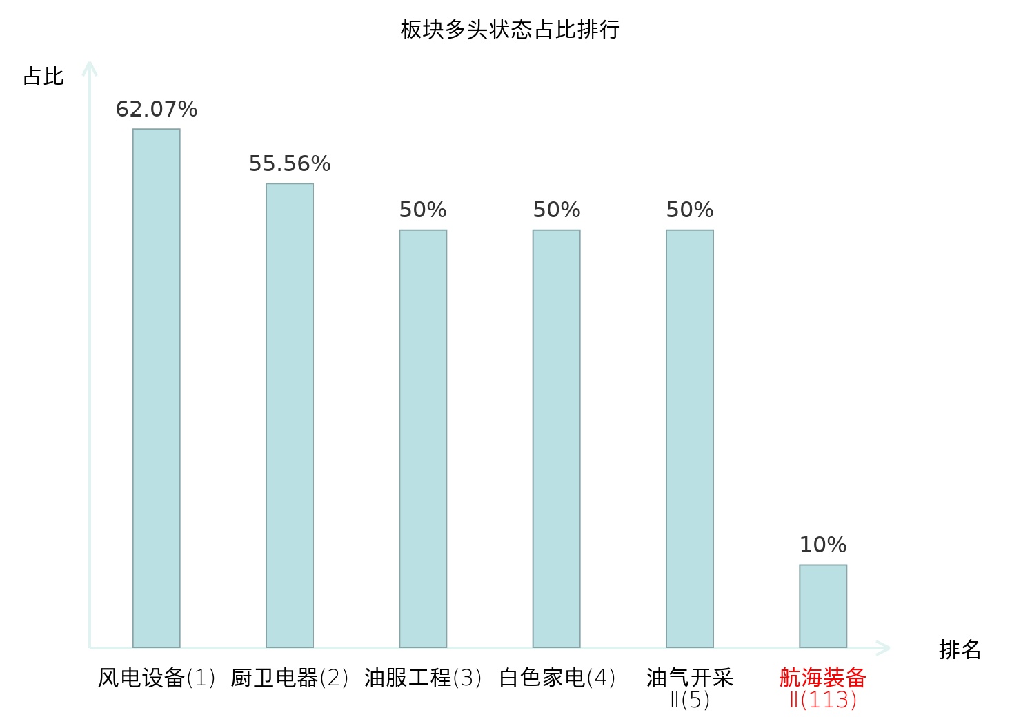 从主力宝信号数据分析,江龙船艇所属的航海装备Ⅱ板块中共1只股票处于主力多头状态,主力多头状态占比在全行业中排名第113位,较昨日一致。排名处于中后段,表明主力对该板块整体看多意愿相对有限;维持不变的排名反映主力态度未发生明显调整。全市场所有行业板块中主力多头状态占比排名中,风电设备板块位居第一;专业连锁Ⅱ板块名次提升最快,较昨日上升65位。这些变动体现了不同行业间主力资金分布的结构性差异,为投资者评估板块相对强弱及潜在关注方向提供了客观参考依据。
