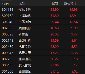 上证报中国证券网讯 12月3日午后,商业航天概念股持续活跃,截至13时20分,招标股份涨停走出2连板,上海瀚讯中环海陆涨超10%,新雷能西部材料航天发展等纷纷走高。此前,顺灏股份封板。