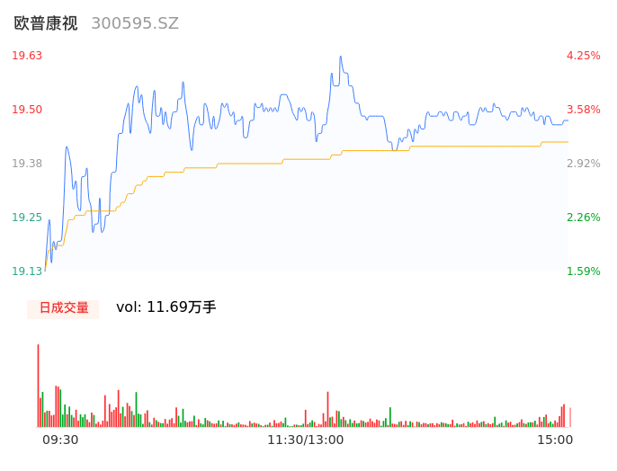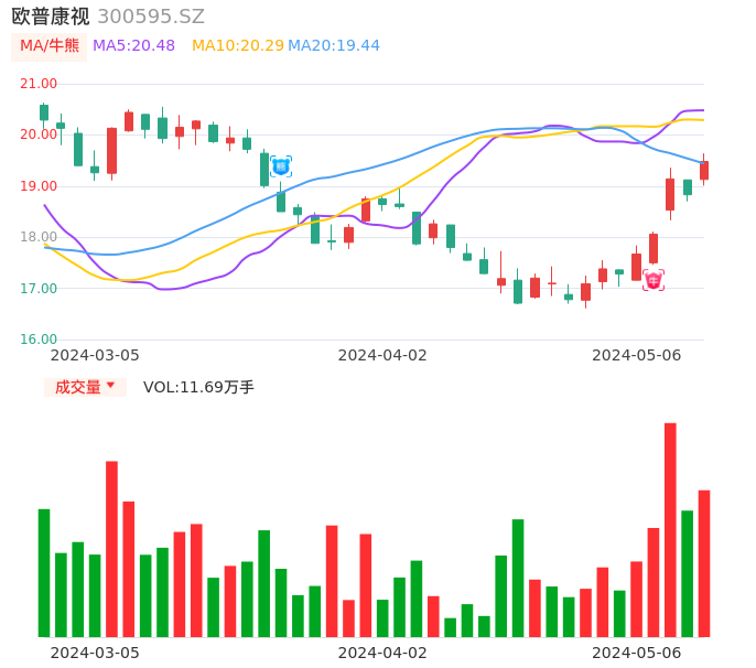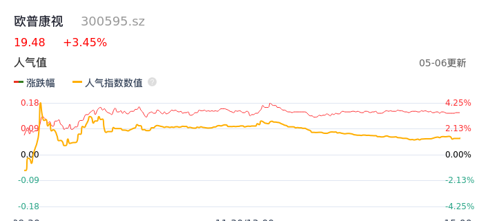 05月06日,欧普康视收报19.48,股价涨幅3.45%,成交金额2.27亿元,换手率1.75%。