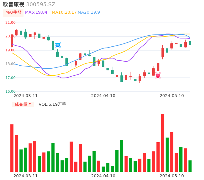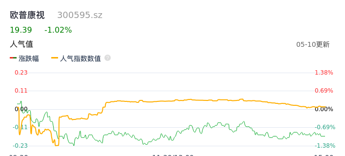 05月10日,欧普康视收报19.39,股价涨幅-1.02%,成交金额1.20亿元,换手率0.93%。