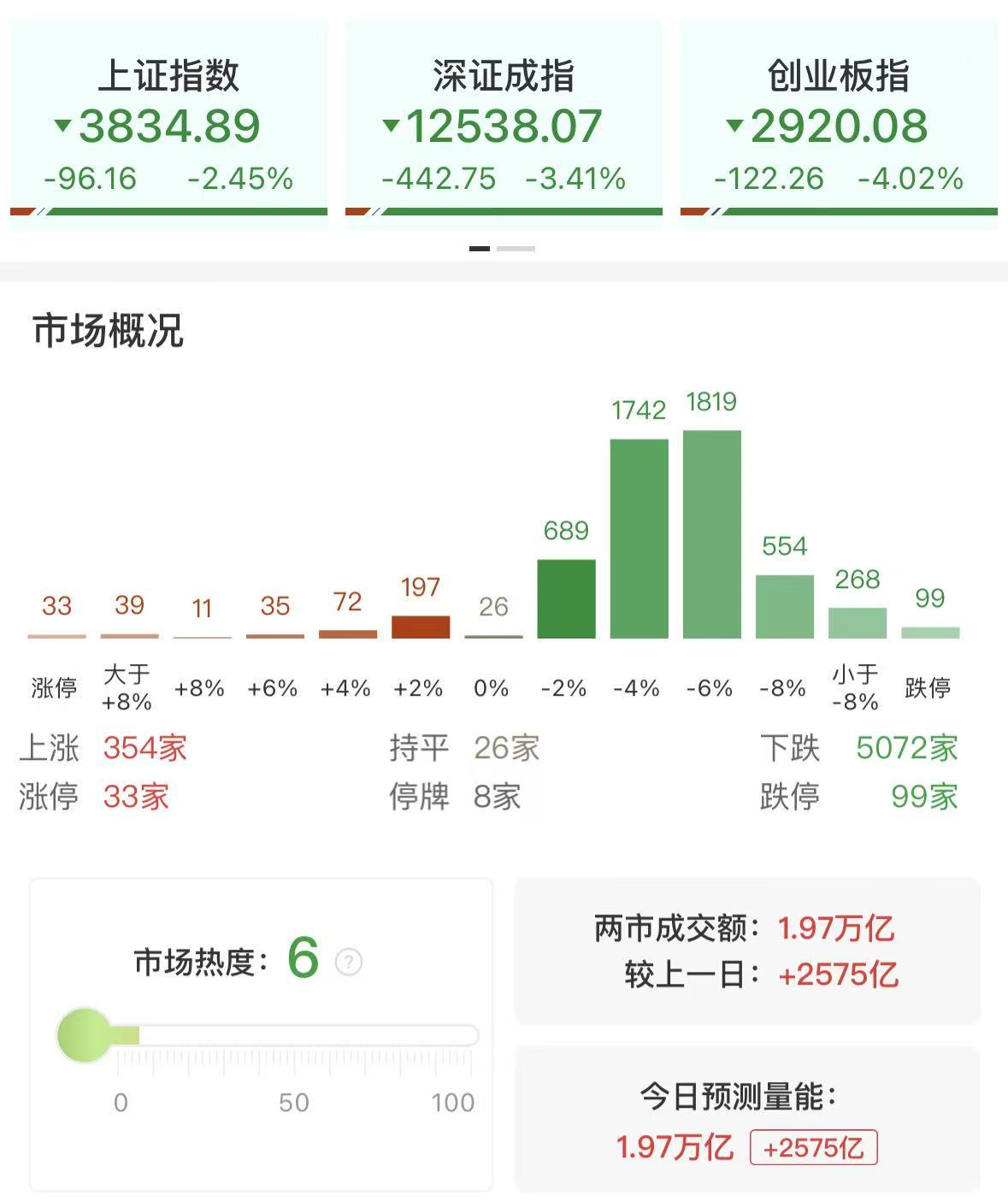 【每日收评】创业板指放量跌超4%,全市场不足400股飘红,近百股跌停