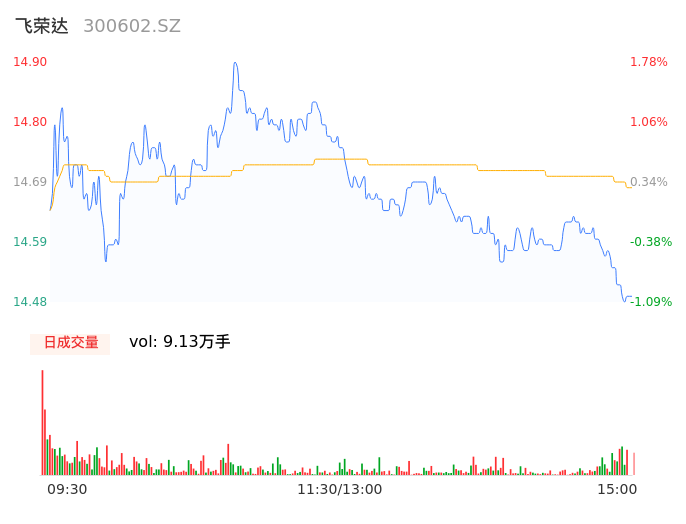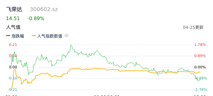 04月25日,飞荣达收报14.51,股价涨幅-0.89%,成交金额1.34亿元,换手率2.36%。