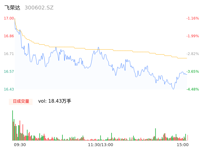 04月02日,飞荣达收报16.59,股价涨幅-3.55%,成交金额3.07亿元,换手率4.77%。