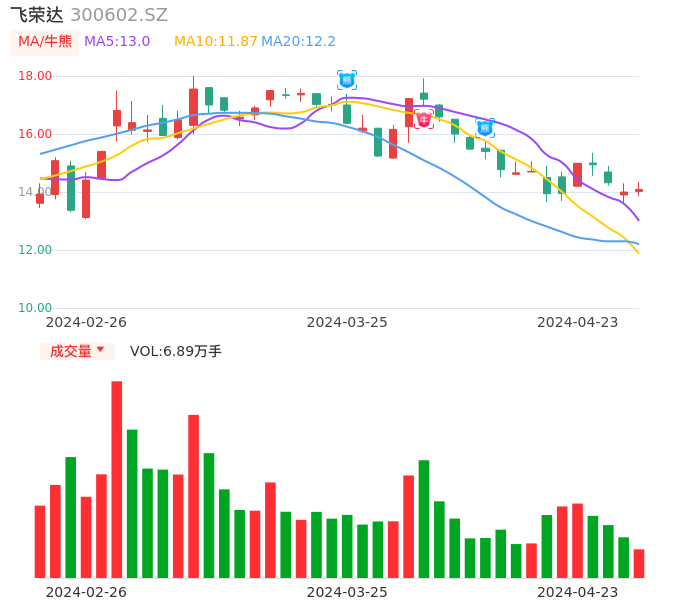 04月23日,飞荣达收报14.09,股价涨幅0.64%,成交金额9698.85万元,换手率1.78%。