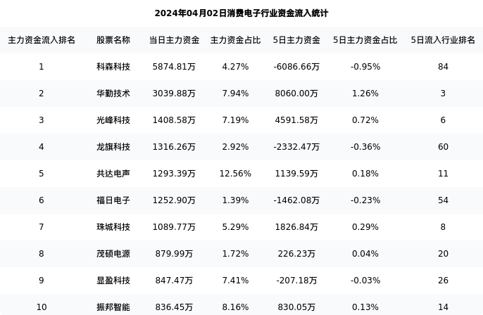 从主力资金流向来看,消费电子行业今日主力资金流入86.90亿元,在所有申万二级行业中排名:10/131。