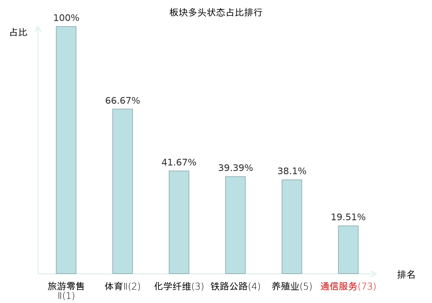 从主力宝信号数据分析,立昂技术所属的通信服务板块中共有8只股票处于主力多头状态,主力多头状态占比在全行业中排名第73位,较昨日下降14位。较高的排名表明主力对于该板块整体看多意愿较强,此次排名下降可能反映了主力对该板块态度的微调。全市场所有行业板块中,旅游零售Ⅱ板块的主力多头状态占比最高,位居第一。旅游零售Ⅱ板块名次提升最快,较昨日上升130位。这些变动揭示了不同行业间主力资金动向的趋势,为投资者提供了关于市场情绪和潜在投资机会的重要线索。