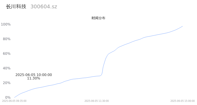 300604长川科技2025年06月05日成交11.61万手,成交金额4.89亿,相较昨日放量4.27万手,换手率2.39%,成交清淡。