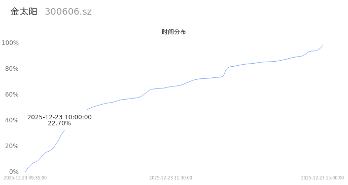 300606金太阳2025年12月23日成交5.02万手,成交金额1.10亿,相较昨日放量1.99万手,换手率4.27%,成交清淡。