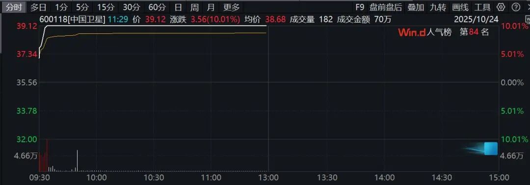 地面兵装、卫星导航、军贸概念、军工电子等板块也纷纷强势上攻,通易航天一度30%涨停,航天环宇、航天智装等20%涨停,上海沪工、国机精工、达华智能等涨停或涨超10%。