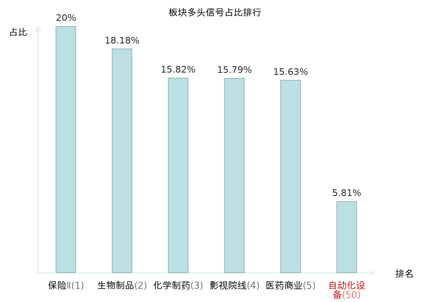 全市场所有行业板块中主力多头信号占比排名中,保险Ⅱ板块位居第一。保险Ⅱ板块名次提升最快,较昨日上升125位。