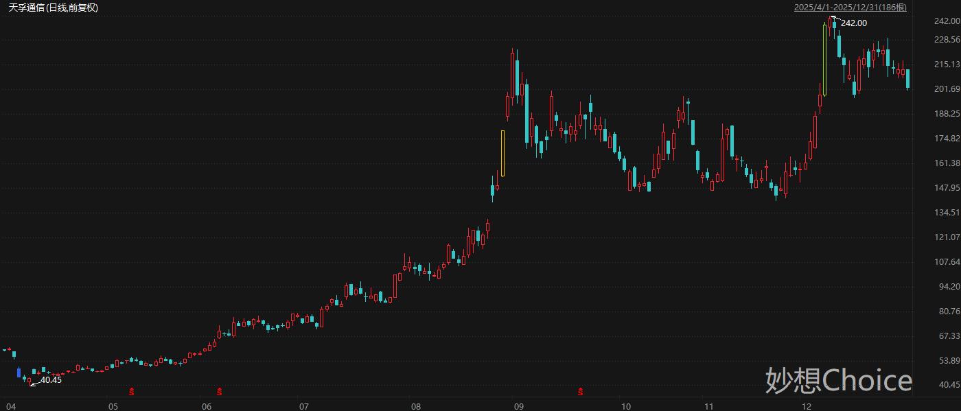 东吴证券分析师张良卫11月2日研报认为,AI算力需求持续高增,多卡互联驱动光通信需求爆发。在推理场景中,基于TCO、用户体验、模型能力的综合考量,正催生出对更大规模scale-up算力节点的需求,光互连有望凭借在传输距离等方面的优势,逐渐在scale-up场景中应用,迎来倍增需求,天孚通信作为全球有源+无源光器件头部厂商,有望深度受益于此产业趋势。二级市场方面,天孚通信股价自4月低点迄今累计最大涨幅498%。