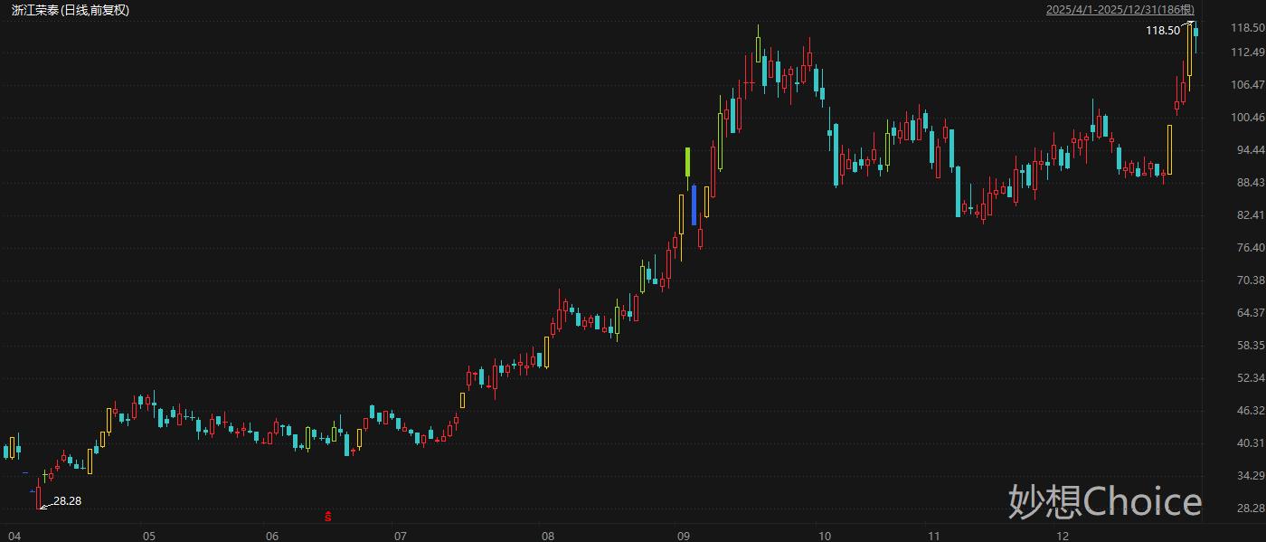 国盛证券分析师12月29日研报认为,丝杠交付稳步推进,机器人赛道战略布局清晰。浙江荣泰收购狄兹精密、广州金力卡位丝杠、齿轮箱等产品,目前已与国内外多家头部机器人相关公司开展合作,业务推进顺利。同时,泰国工厂正全力推进建设,预计投产在即。公司机器人业务产品开发、量产推进顺利,且战略布局清晰,看好机器人业务带来的增长弹性。二级市场方面,浙江荣泰周三盘中创下历史新高,最高触及118.5元/股,拉长时间来看,其股价自4月低点迄今累计最大涨幅319%。