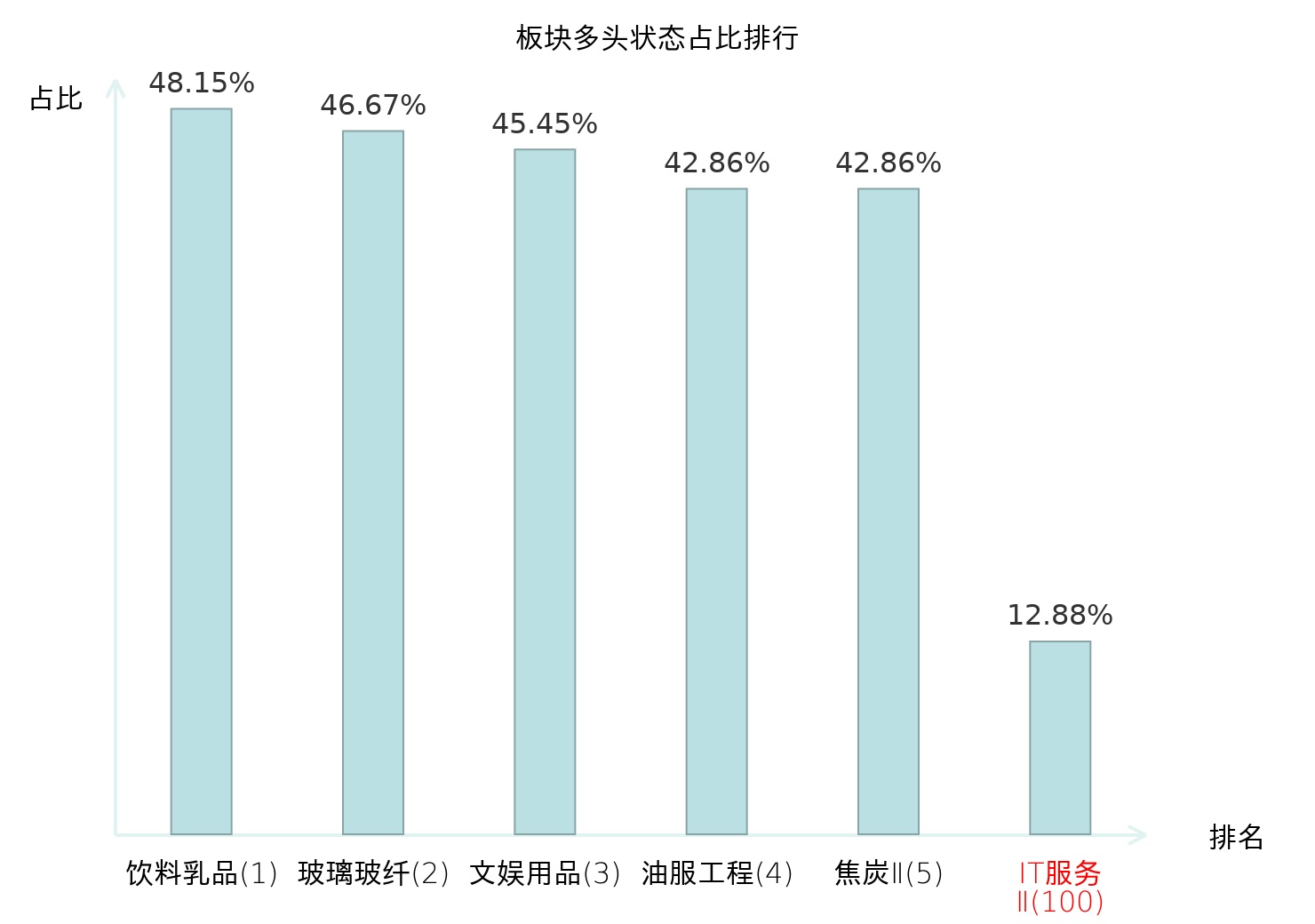 全市场所有行业板块中主力多头状态占比排名中,饮料乳品板块位居第一。商用车板块名次提升最快,较昨日上升77位。
