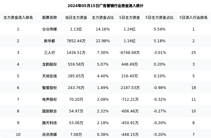 从主力资金流向来看,广告营销行业今日主力资金流入14.14亿元,在所有申万二级行业中排名:73/131。
