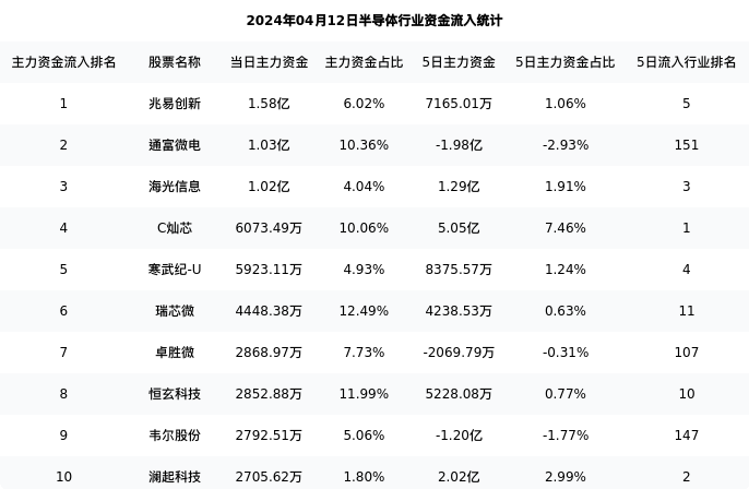从主力资金流向来看,半导体行业今日主力资金流入97.36亿元,在所有申万二级行业中排名:55/131。