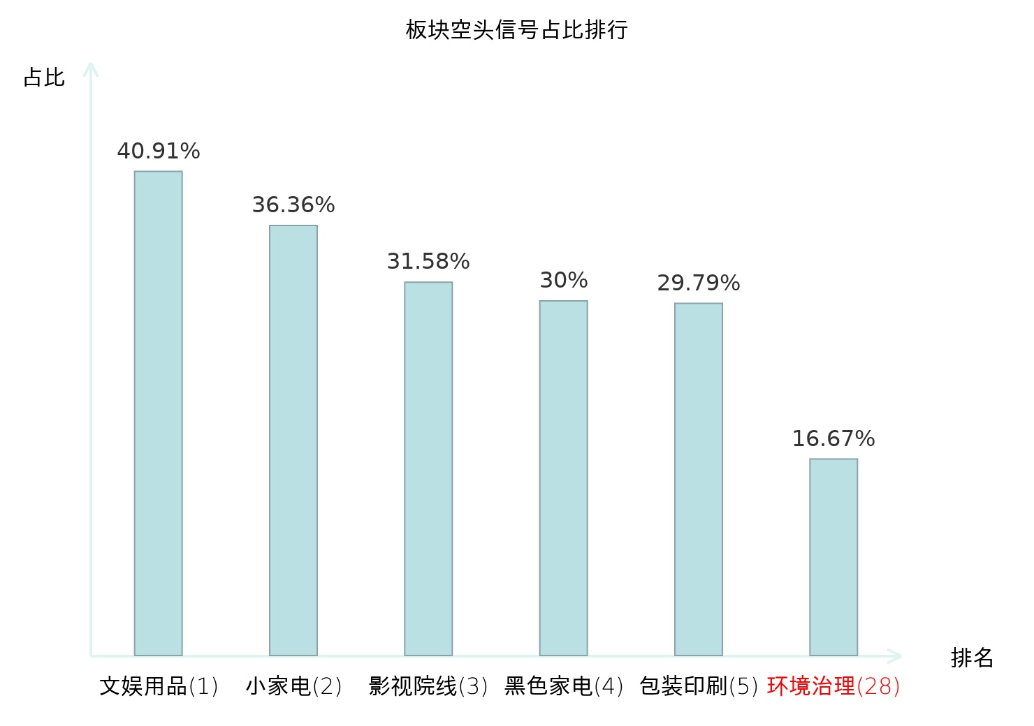 全市场所有行业板块中主力空头信号占比排名中,文娱用品板块位居第一。包装印刷板块名次提升最快,较昨日上升124位。