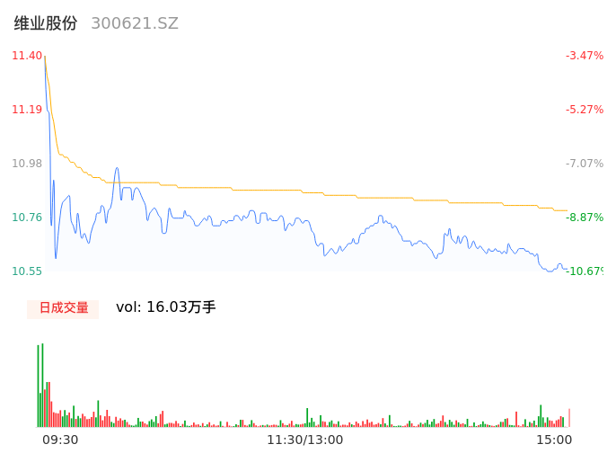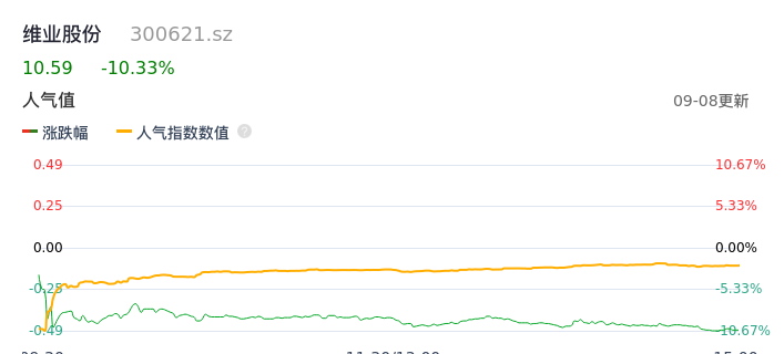 09月08日,维业股份收报10.59,股价涨幅-10.33%,成交金额1.73亿元,换手率8.18%。