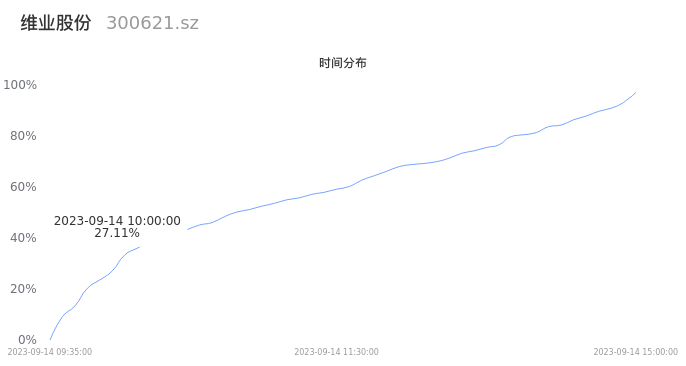 根据成交分布分析,该股票当天放量成交,成交清淡。时间上看,早盘前半小时成交量占据当天总成交量的27.11%;价格上看,成交呈现中间峰。成交分布分析主要研究股票成交的分布特性,不具有预测功能,请知悉。
