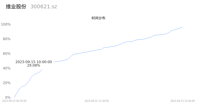 300621维业股份2023年09月15日成交2.56万手,成交金额2540.36万元,相较昨日缩量1.86万手,换手率1.31%,成交清淡。