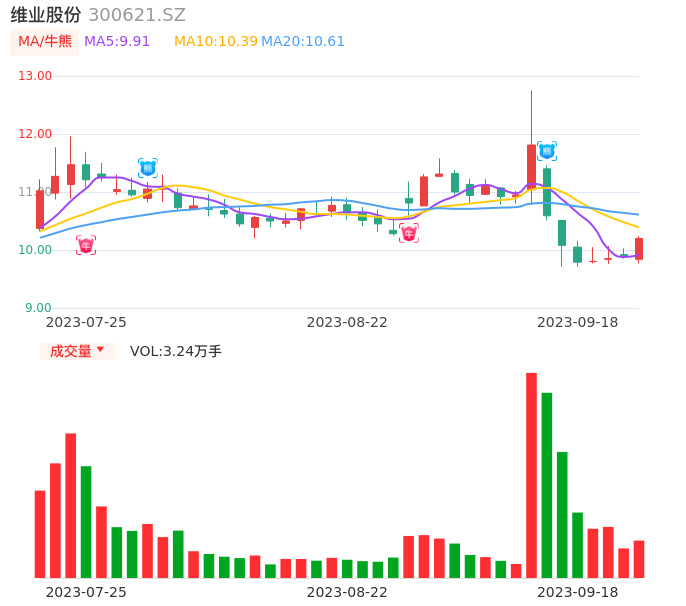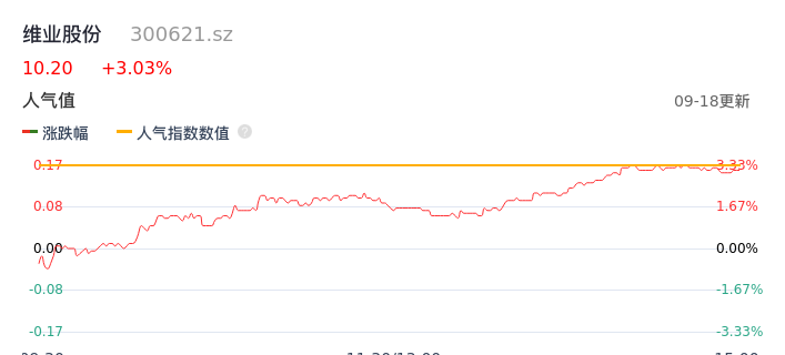 09月18日,维业股份收报10.20,股价涨幅3.03%,成交金额3252.01万元,换手率1.65%。