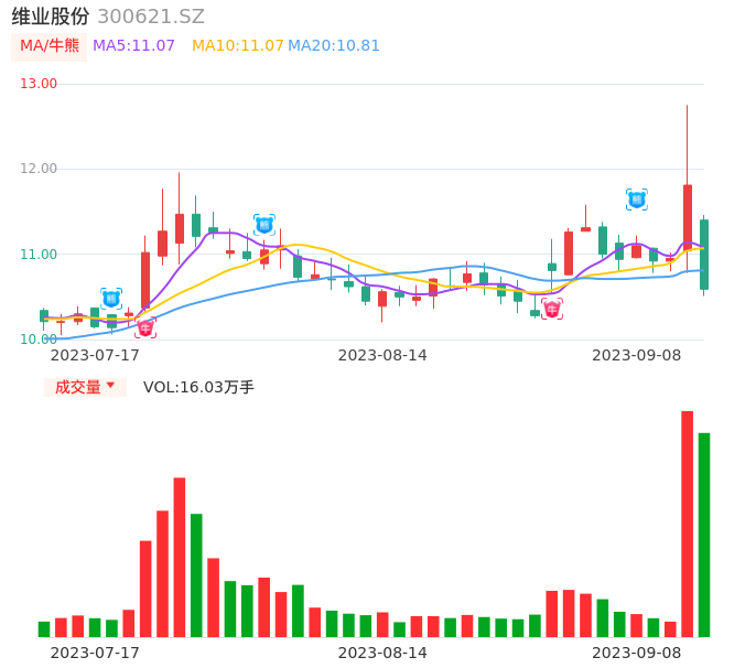 09月08日,维业股份收报10.59,股价涨幅-10.33%,成交金额1.73亿元,换手率8.18%。