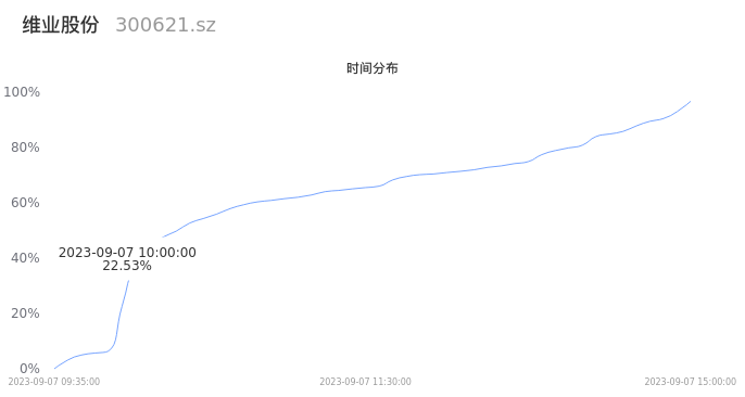 根据成交分布分析,该股票当天放量成交,成交清淡。时间上看,早盘前半小时成交量占据当天总成交量的22.53%;价格上看,成交呈现中间峰。成交分布分析主要研究股票成交的分布特性,不具有预测功能,请知悉。