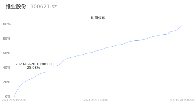 根据成交分布分析,该股票当天放量成交,成交清淡。时间上看,早盘前半小时成交量占据当天总成交量的25.08%;价格上看,成交呈现右偏峰。成交分布分析主要研究股票成交的分布特性,不具有预测功能,请知悉。