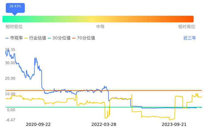 2023年09月21日,维业股份下跌1.58%收于9.97,今日成交金额1735.90万元。下文将从市盈率PETTM、市净率PB、市现率3个角度去分析公司估值情况。