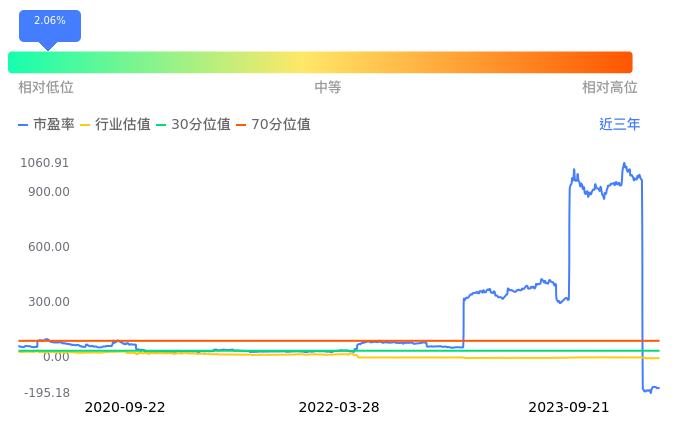 维业股份当前市盈率PETTM为-180.63,在所属的装修装饰中,市盈率PETTM排22名。前5名分别为金螳螂PETTM11.65、德才股份PETTM11.81、江河集团PETTM15.35、恒尚节能PETTM18.24、亚厦股份PETTM34.55。从PETTM估值走势数据来看,维业股份当前市盈率PETTM为-180.63,超过近3年2.06%的历史数据。