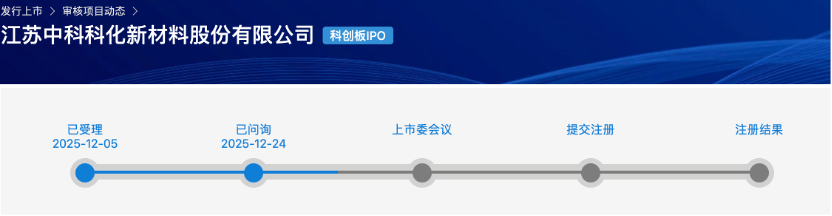 频准激光、中科科化2家企业审核状态更新为已问询