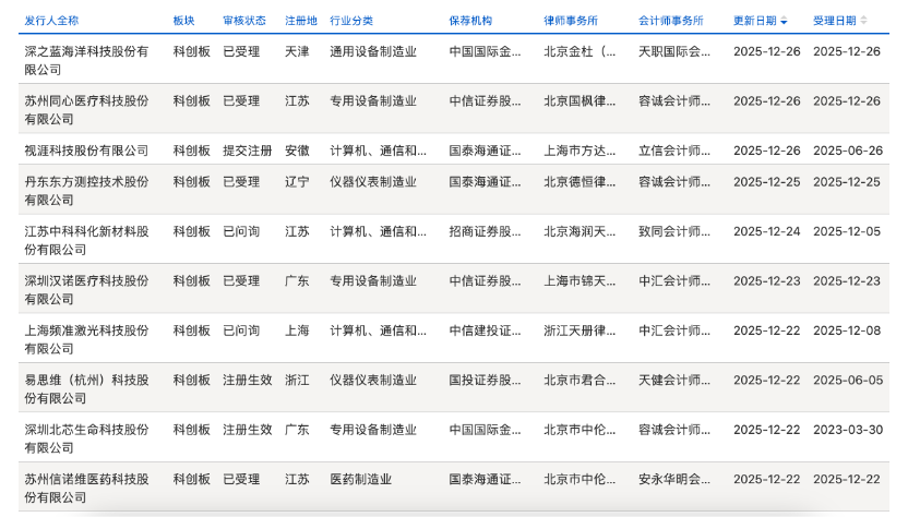 本周5家获受理企业中,3家为医疗领域企业,其余两家聚焦于海外智能矿山与深海科技领域。