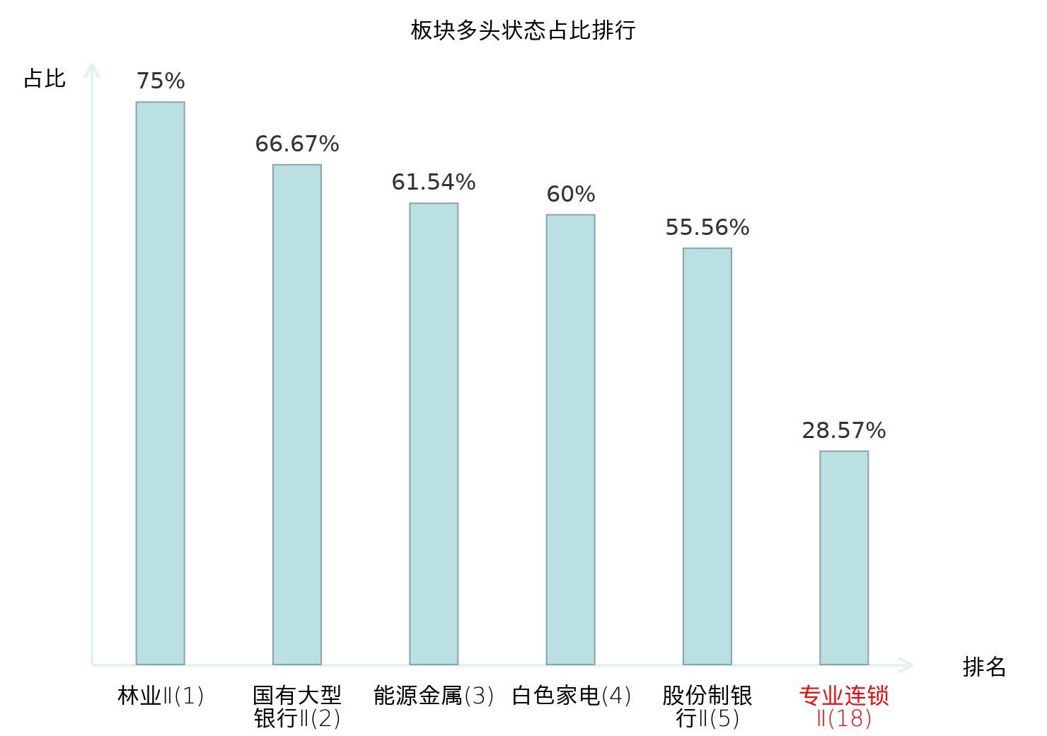 从主力宝信号数据分析,博士眼镜所属的专业连锁Ⅱ板块中共2只股票处于主力多头状态,主力多头状态占比在全行业中排名第18位,较昨日上升5位;排名上升表明主力对于该板块整体看多意愿有所增强,此次变动可能反映主力对该板块态度的阶段性调整。全市场所有行业板块中主力多头状态占比排名中,林业Ⅱ板块位居第一;数字媒体板块名次提升最快,较昨日上升48位;这些变动揭示了不同行业间主力资金分布的结构性变化,为投资者观察板块相对强弱及潜在关注方向提供了客观依据。