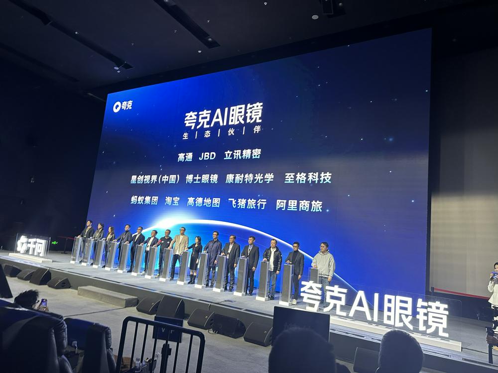 发布会现场,夸克AI眼镜产业联盟宣布成立,包括立讯精密、高通、JBD、至格科技、星创视界(中国)、博士眼镜、康耐特光学等企业参与。