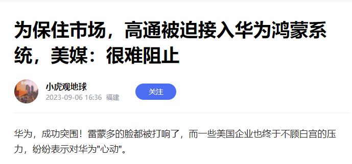 二是:高通不顾禁令,接入华为鸿蒙系统。