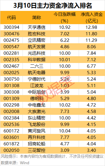 从个股来看,38股主力资金净流入超2亿元,天孚通信、胜宏科技、立讯精密获主力资金净流入均超11亿元,这3股均为OpenClaw带火个股。