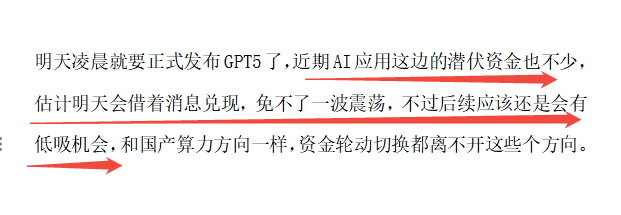 除了半导体跌,今天AI应用方向个股也是普跌,好几个人气股都走的跳空低开的K线,像鼎捷数智、万兴科技、当虹科技、因赛集团都是跳空往下跌,这也奠定了今天GPT5出来后,这个方向的潜伏盘在做兑现。