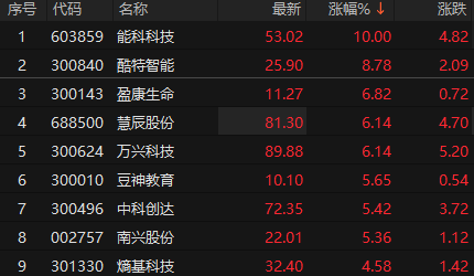 上证报中国证券网讯 8月27日早盘,AI智能体概股表现活跃,截至9时31分,能科科技涨停收获2连板,酷特智能涨逾8%,盈康生命、万兴科技、豆神教育等跟涨。