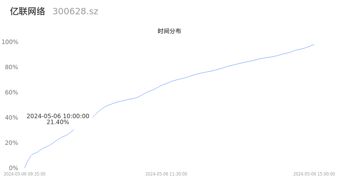 300628亿联网络2024年05月06日成交10.55万手,成交金额3.73亿元,相较昨日放量1.32万手,换手率1.46%,成交清淡。