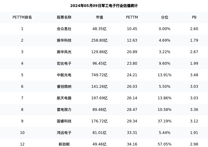 新劲刚最新报告期数据为一季度,下表汇总了军工电子行业内市值靠前的公司一季度主要经营数据