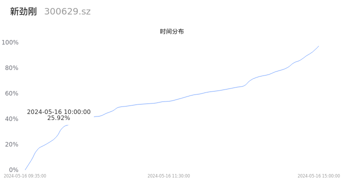 300629新劲刚2024年05月16日成交5.02万手,成交金额9432.65万元,相较昨日缩量2784手,换手率2.53%,成交清淡。