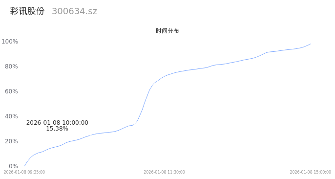 300634彩讯股份2026年01月08日成交21.18万手,成交金额5.63亿,相较昨日放量5.23万手,换手率4.87%,成交清淡。