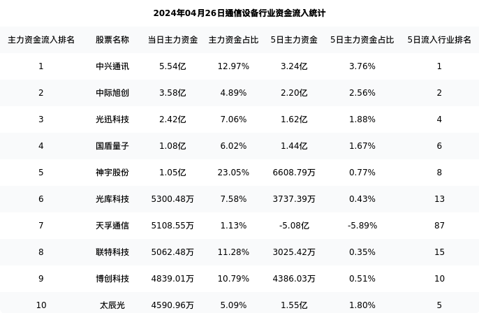 从主力资金流向来看,通信设备行业今日主力资金流入205.94亿元,在所有申万二级行业中排名:58/131。
